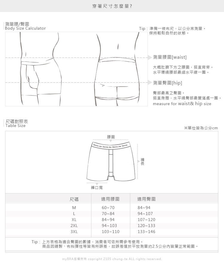 商品尺寸表